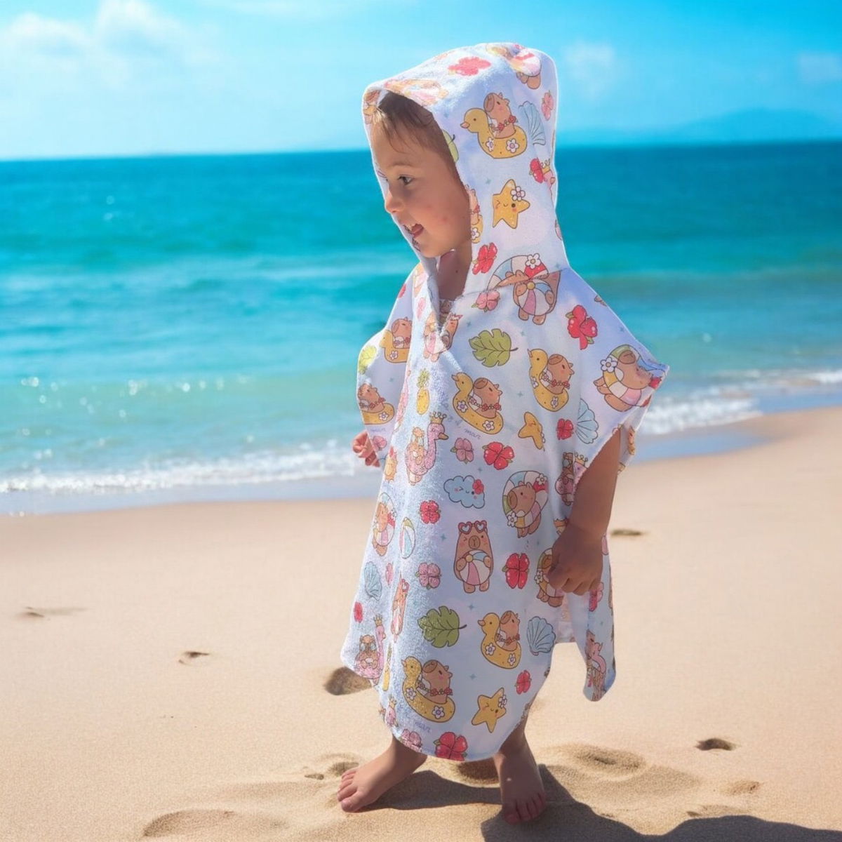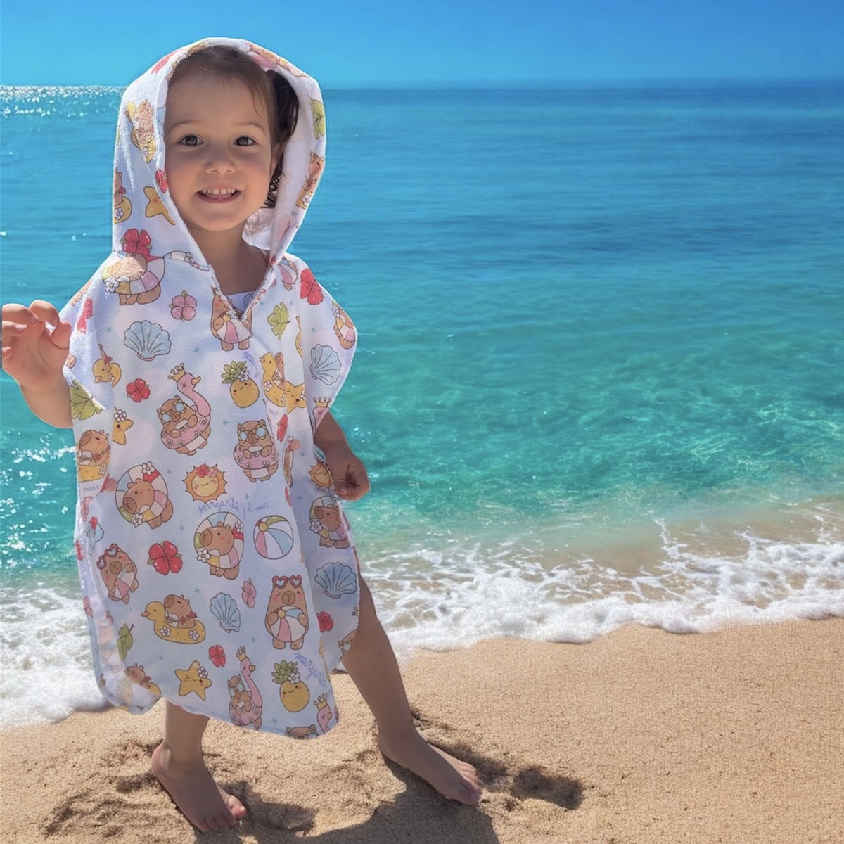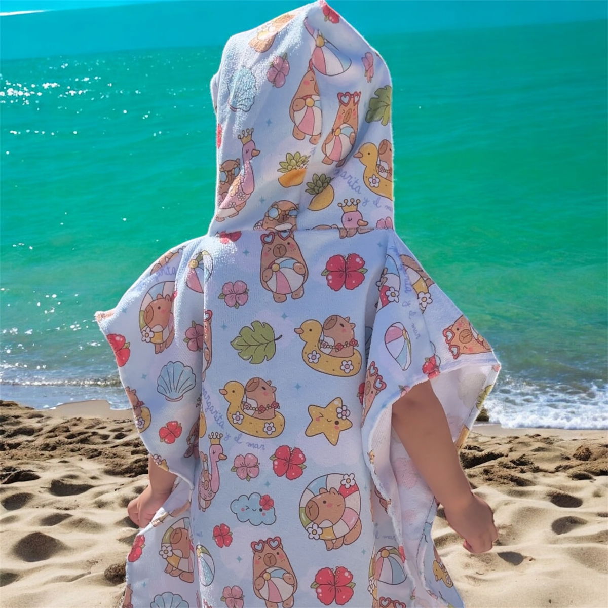 Beneficios: Cierre lateral con broches que facilita poner/sacar la malla con total privacidad y capucha para proteger del sol.