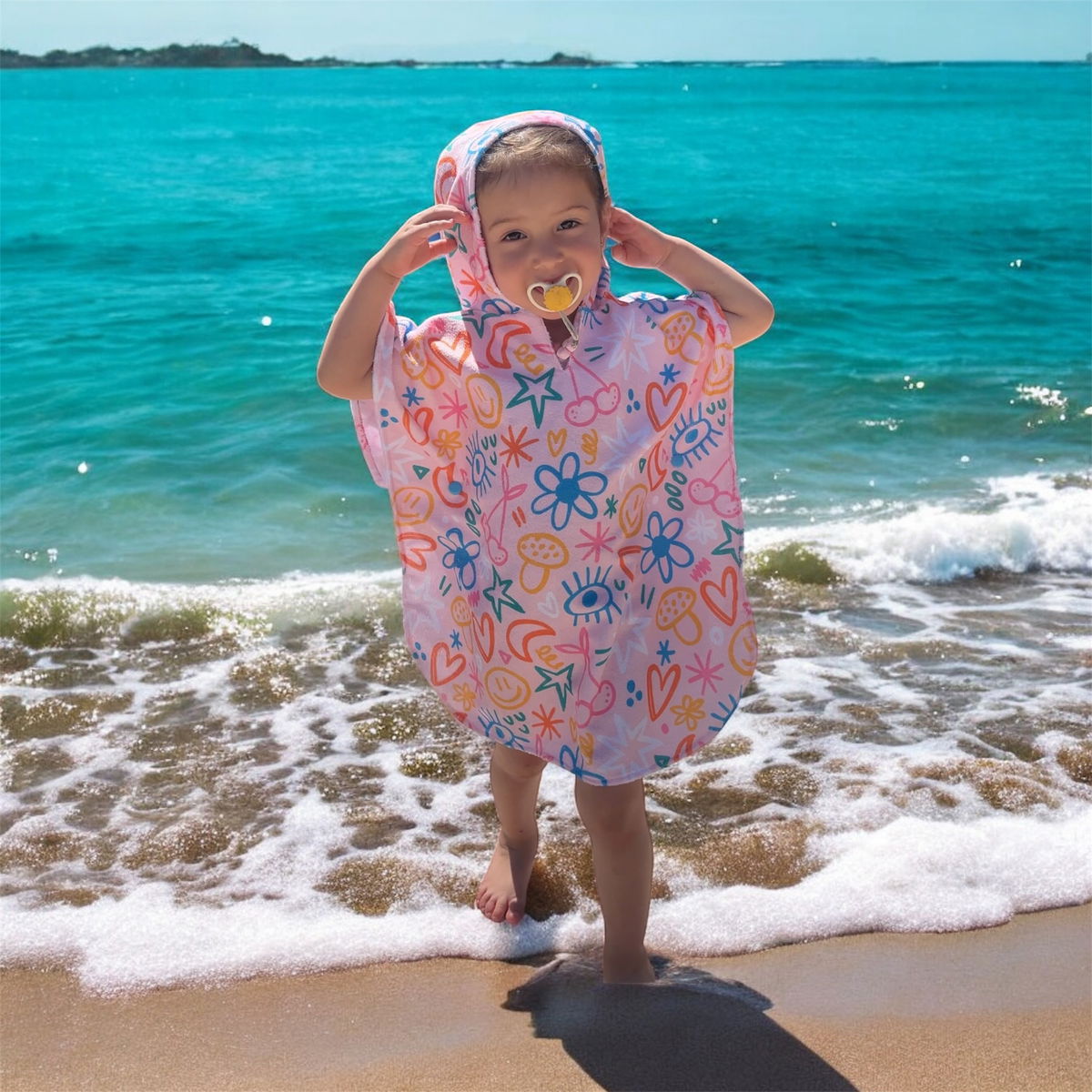 Beneficios: Cierre lateral con broches que facilita poner/sacar la malla con total privacidad y capucha para proteger del sol.